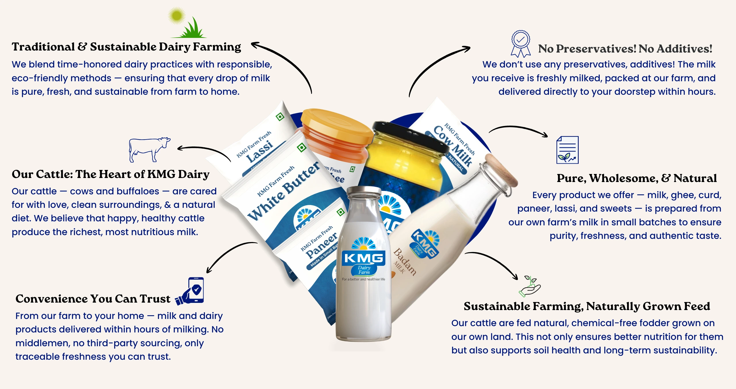 We, at KMG dairy farm aim to provide fresh and unadulterated dairy products to our customers.